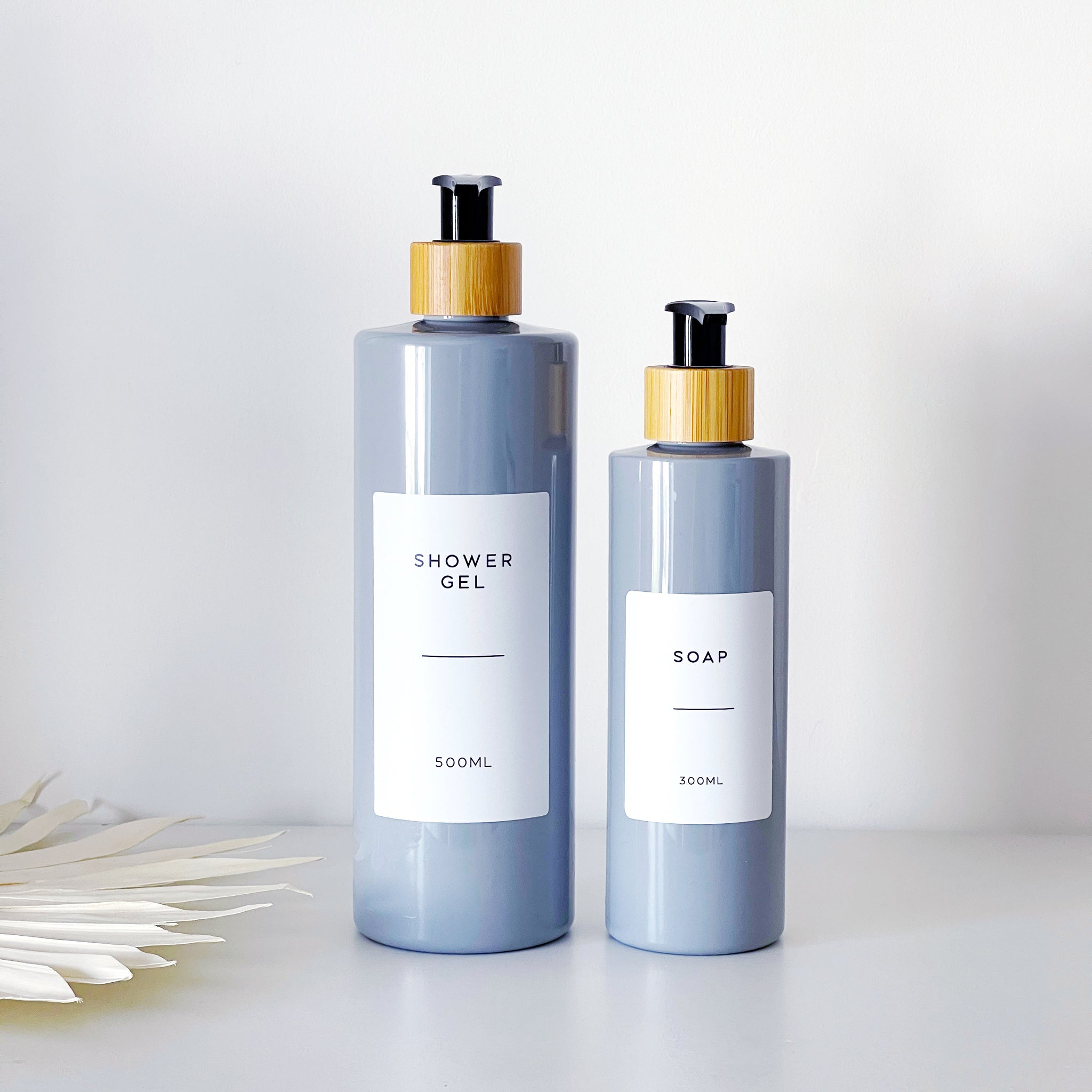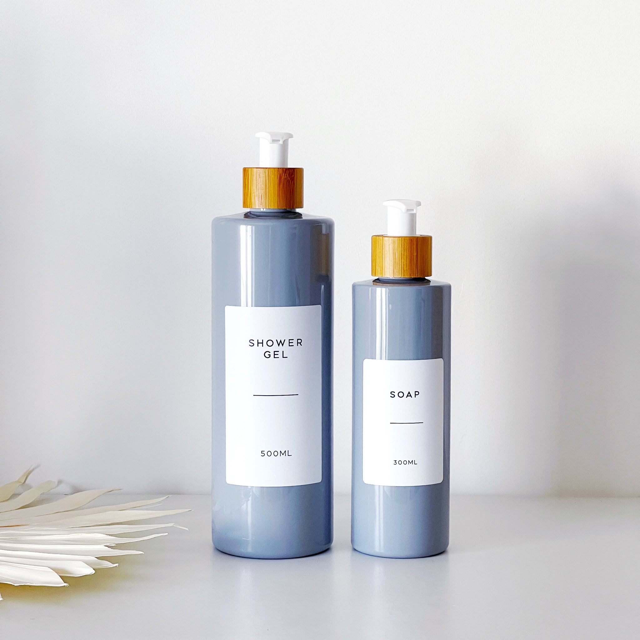 Finished with a matt white minimalist personalised label and choice of white or black bamboo pump dispenser.