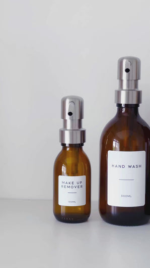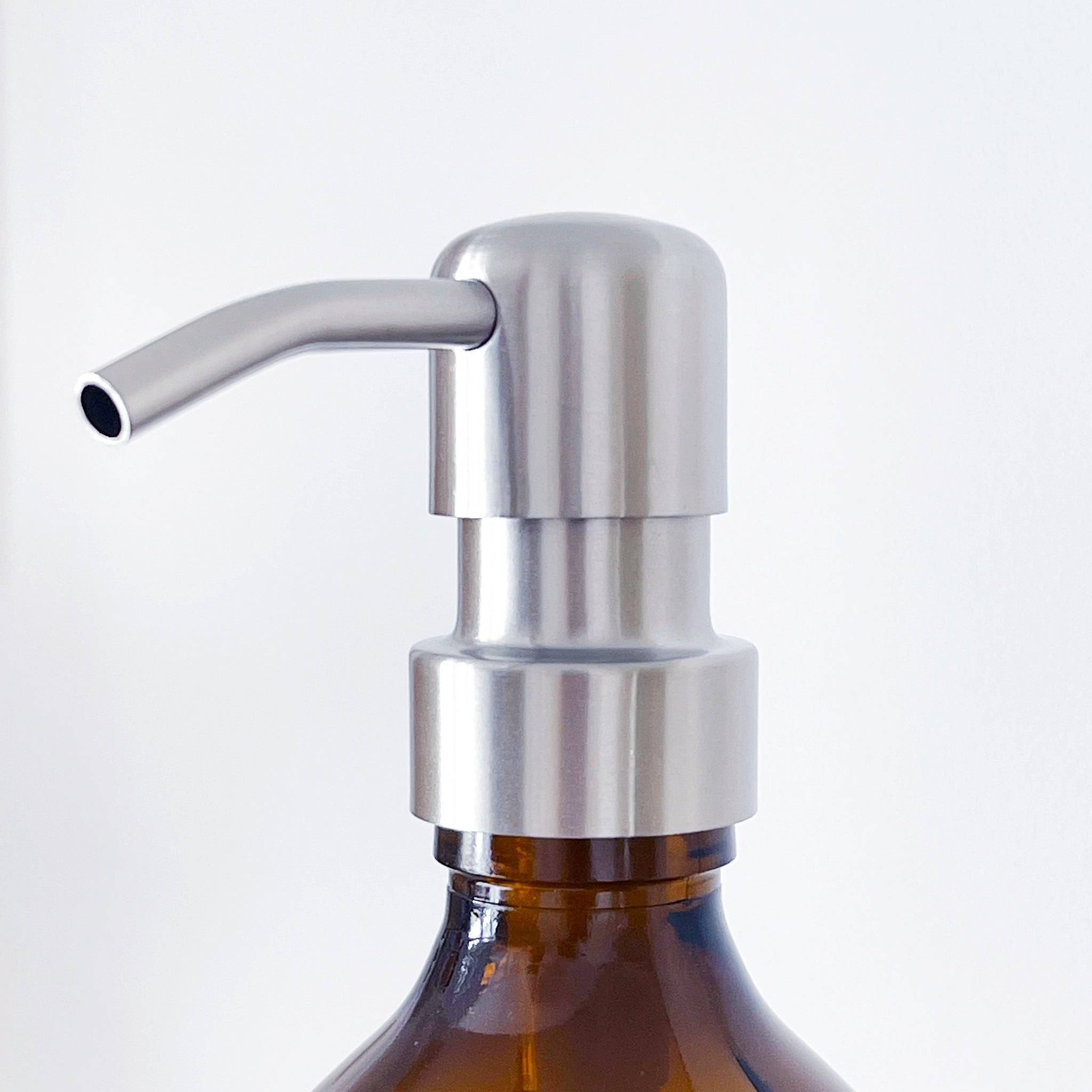 Finished with a matt white minimalist personalised label and silver stainless steel metal pump dispenser.