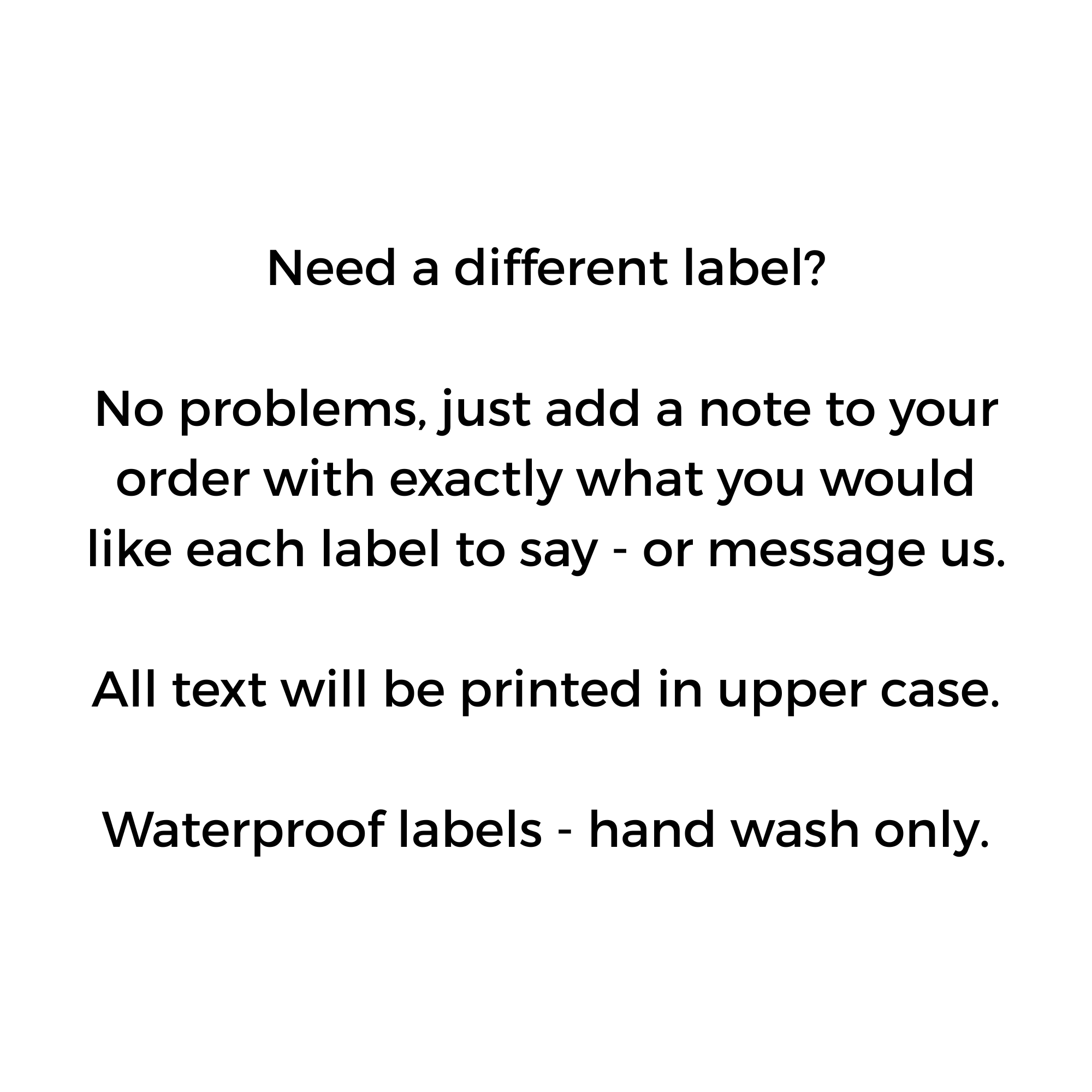 If you need a different label/s just add a note to your order or send us a message.